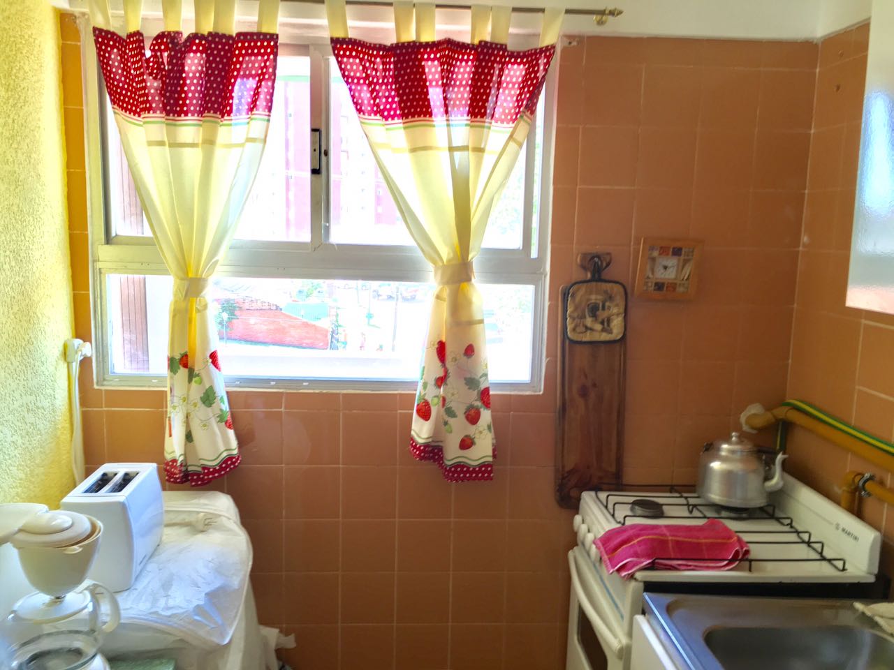 Tiene vajilla y batería de cocina completa (No tiene lavarropas ni cafetera).