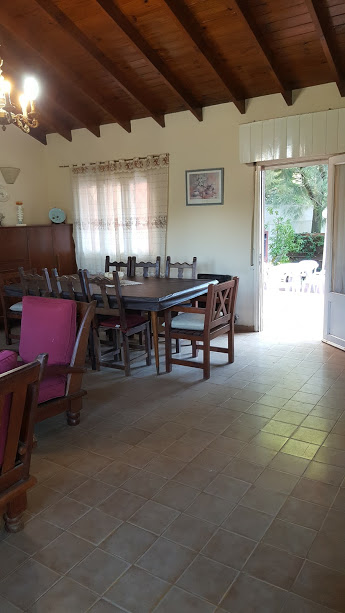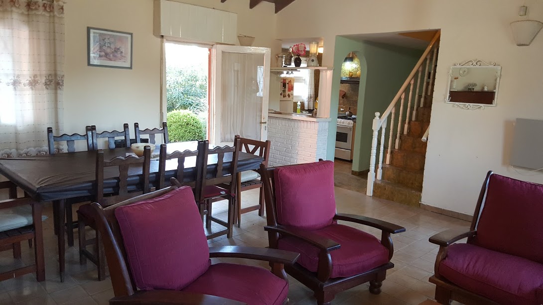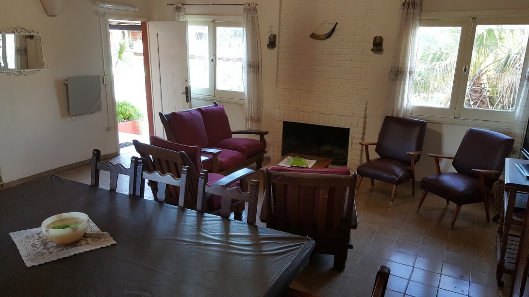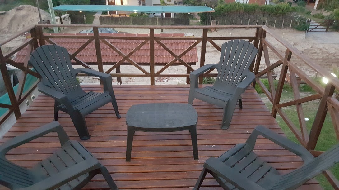 Es un chalet ubicado en la calle 33 y playa. Se encuentra a 15 metros de la playa y a 200 metros del centro comercial. Tiene una capacidad hasta 7-8 personas (pueden ser 8 máximo sólo si hay 2 niños pequeños en el grupo familiar). Es un chalet ideal para familias numerosas. La planta baja se compone de un living con hogar, comedor, cocina completa, baño con ducha y lavadero. La planta alta se compone de dos dormitorios: cada uno con una cama de dos plazas, uno de ellos tiene salida a una terraza (deck de madera) con vista al mar. Tiene un tercer dormitorio con dos camas de una plaza, un altillo con otras dos camas de una plaza para que duerman dos niños o un adulto, y por último un baño completo con bañera. Tiene garage cerrado y patio y parque amplio con parrilla y horno de barro.