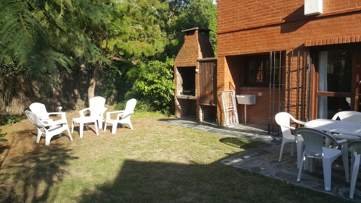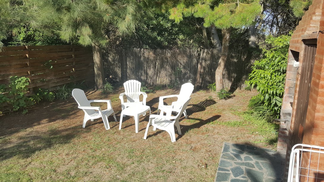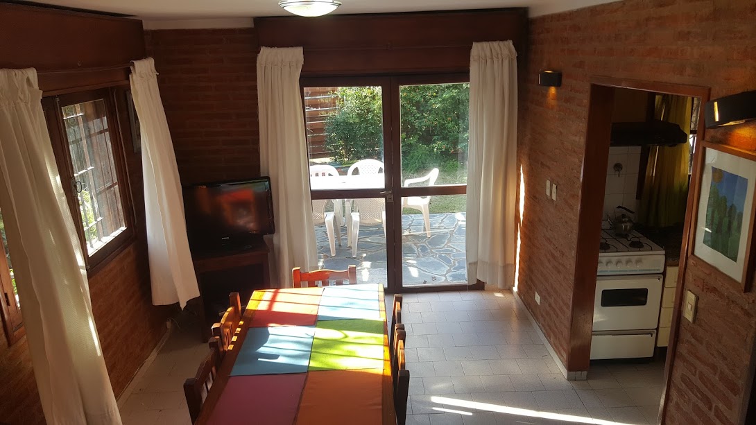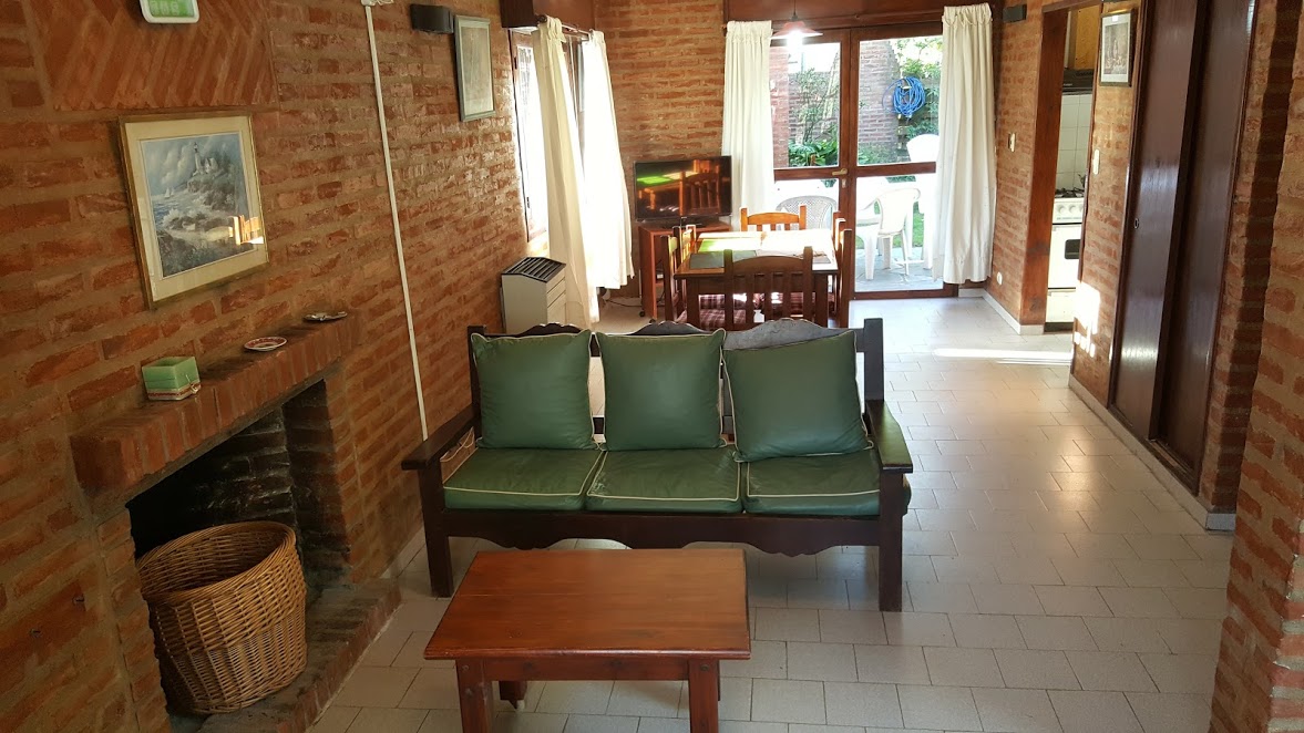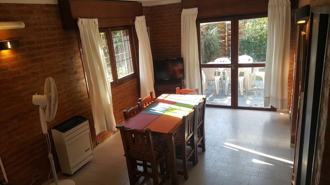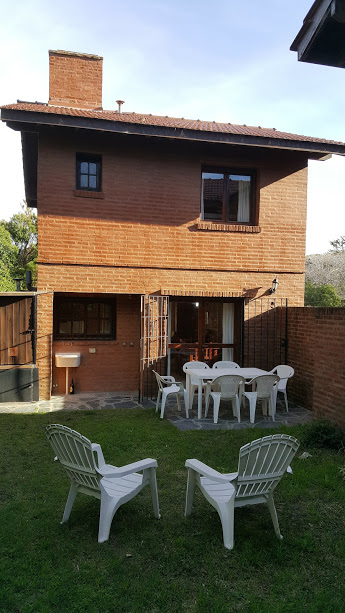 Son dos cabañas ubicadas en la calle 34 y playa. Se encuentra a 15 metros de la playa y a tres cuadras del centro comercial. Tiene una capacidad hasta 6 personas. La planta baja se compone de un living con hogar, comedor, cocina completa y un baño con ducha. La planta alta se compone de dos dormitorios y un baño completo con bañera. Tiene patio y parque con parrilla, lavadero y garage cerrado.