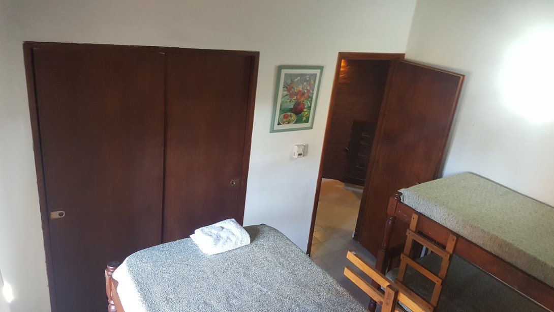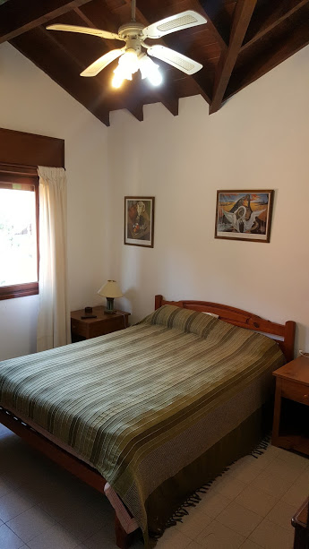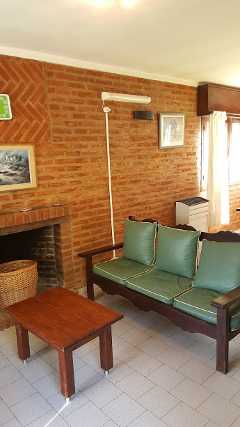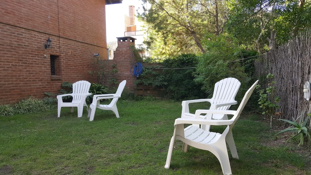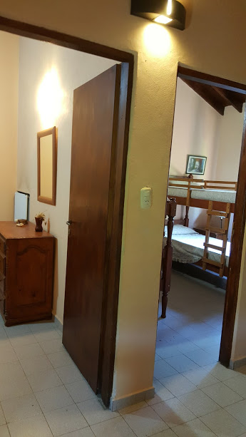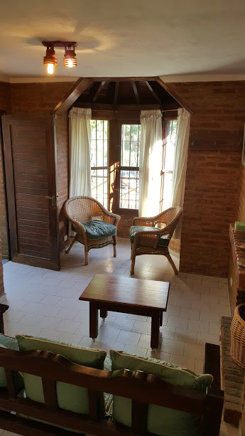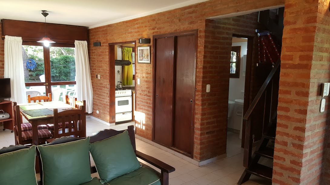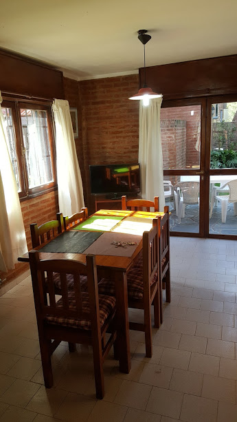 Son dos cabañas ubicadas en la calle 34 y playa. Se encuentra a 15 metros de la playa y a tres cuadras del centro comercial. Tiene una capacidad hasta 6 personas. La planta baja se compone de un living con hogar, comedor, cocina completa y un baño con ducha. La planta alta se compone de dos dormitorios y un baño completo con bañera. Tiene patio y parque con parrilla, lavadero y garage cerrado.